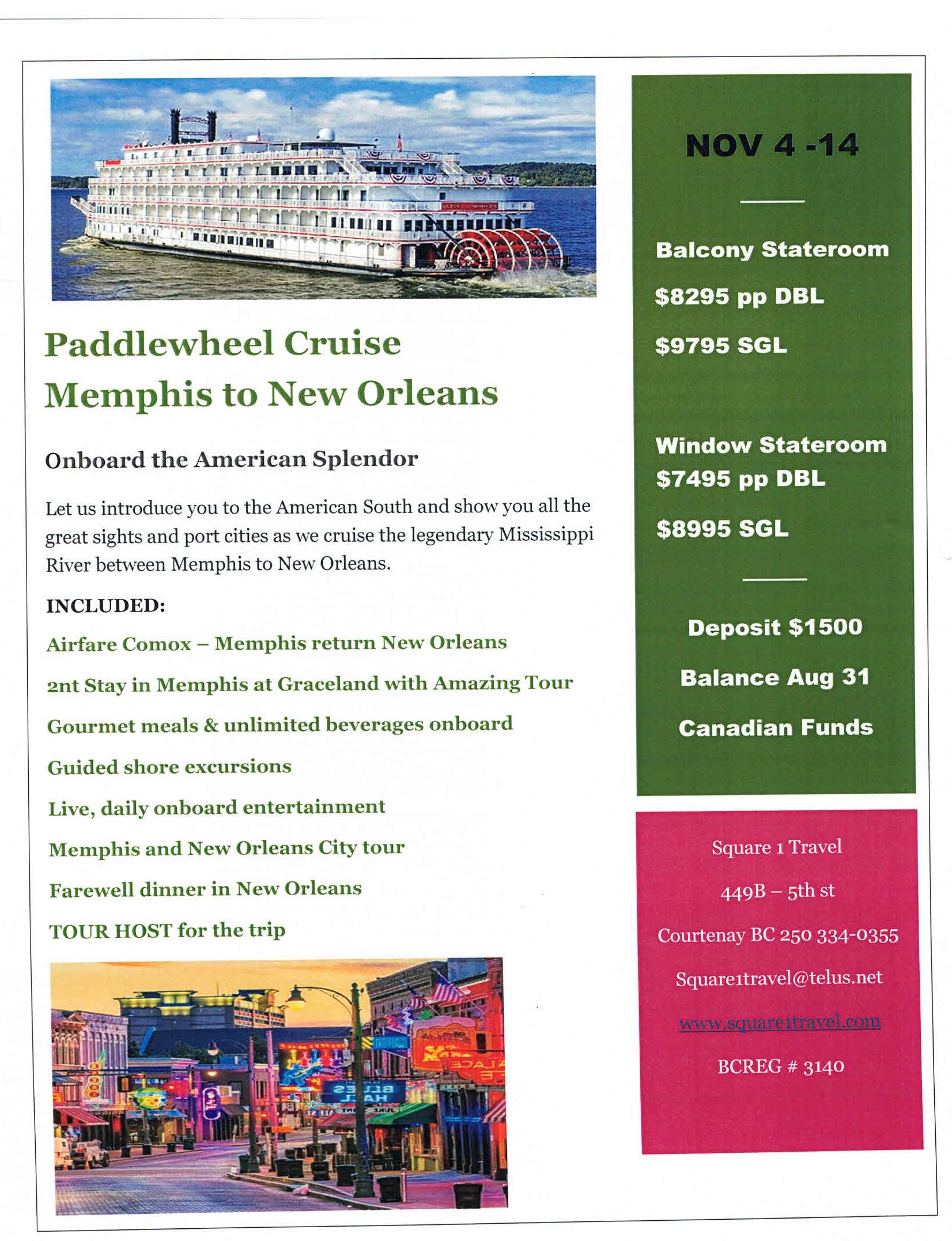 | Email: | Square1travel@telus.net |